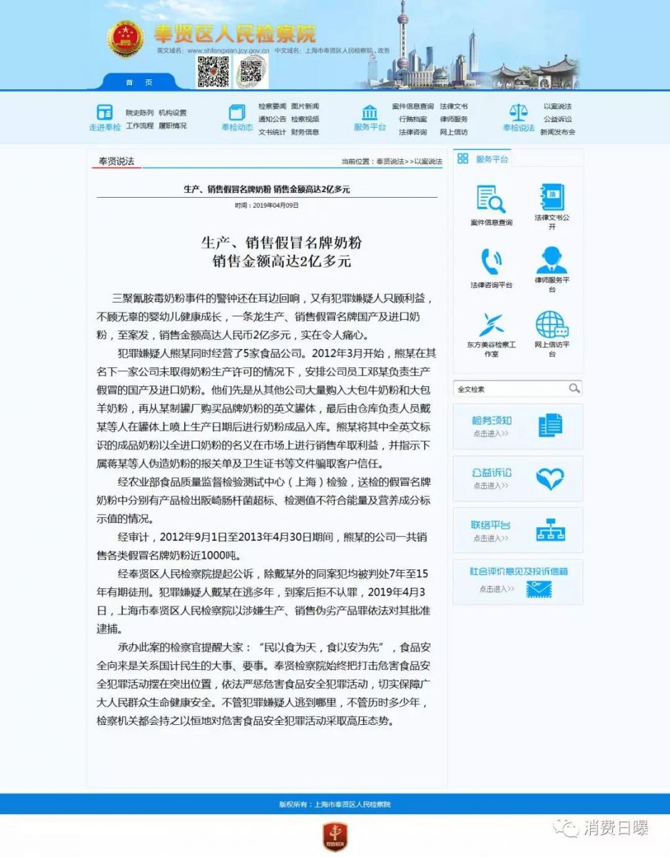 自媒体《消费日曝》编辑了解,罪嫌疑人只顾利益,不顾无辜的婴幼儿健康成长,一条龙生产、销售假冒名牌国产及进口奶粉,至案发,销售金额高达人民币2亿多元,非常穷凶极恶。