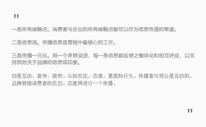 在唐·舒尔茨的“营销即传播”的理论中,有几个核心的关键词:
