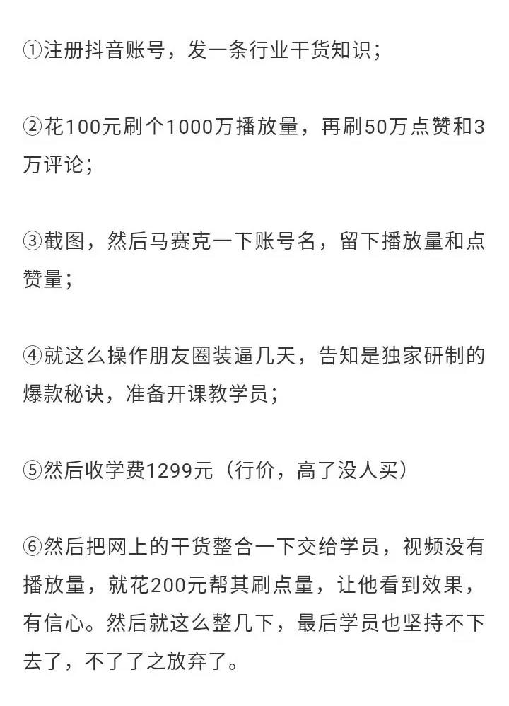 由此还延伸出另外的智商税产业,随便一个什么人就可以制造点简单内容,放到网上把数据刷爆。然后大肆炒作,说自己拥有某某秘笈,就可以开班授课了。
