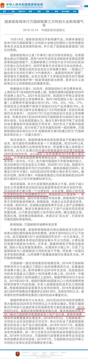 也就是说,美国不可能永远吃亏,早晚有一天它会再次“退群”,制定自己的终端费率,率先打破万国邮联。按照美国国内的派送成本,即使它不赚你钱,也够你喝一壶的。