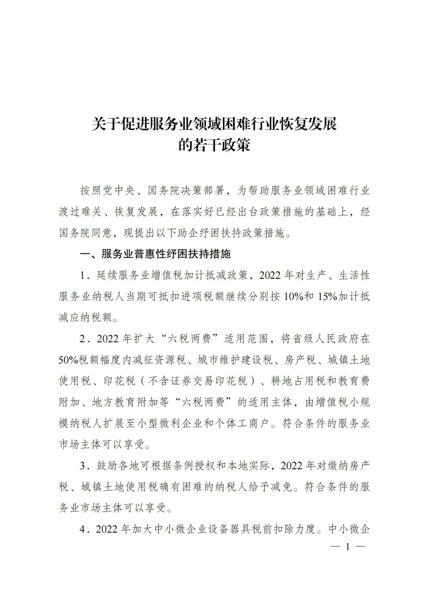 《关于促进服务业领域困难行业恢复发展的若干政策》已经国务院同意,现印发给你们,请认真组织实施。