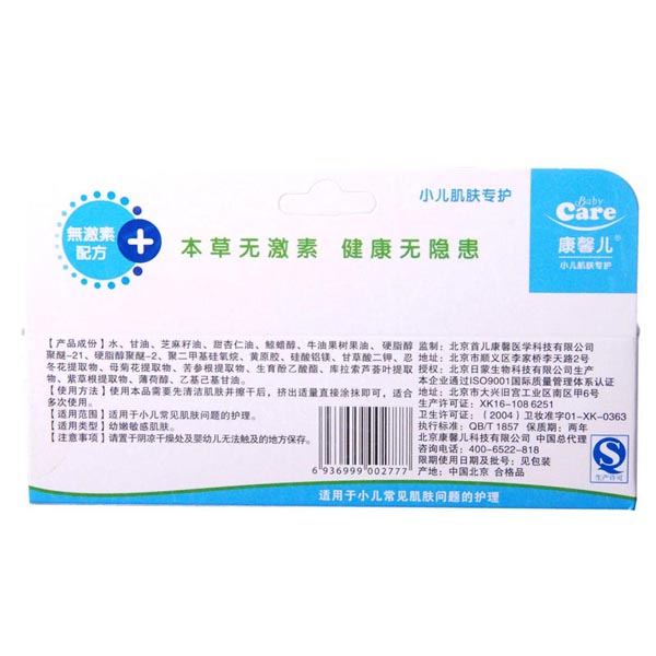 我公司,从广大康馨儿肤乐霜用户切身利益着手,力求为宝宝提供最天然、最安全、最健康的产品。特此,于2012年6月以后开始将一代康馨儿本草肤乐霜停产,正式将升级2代升级版投入生产并发售。本品大的改变,除了在制作工艺上有所改进之外,产地也发生了改变,正式变为“中国北京”。升级2代升级版产地授权“北京日蒙生物科技有限公司”生产(本企业通过ISO9001国际质量管理体系认证),地址在北京市大兴区旧宫镇工业区南区甲6号。