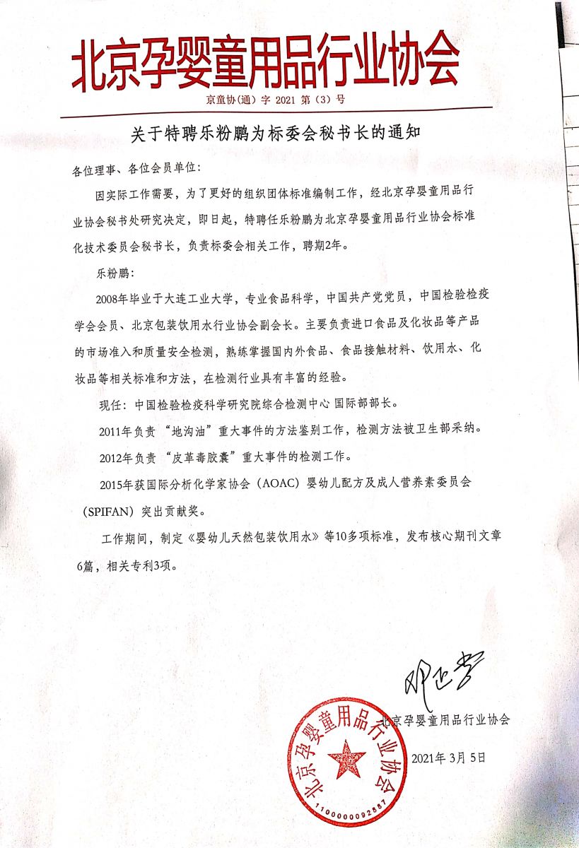 > > 通知公告 > 关于特聘乐粉鹏为标委会秘书长的通知