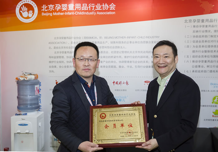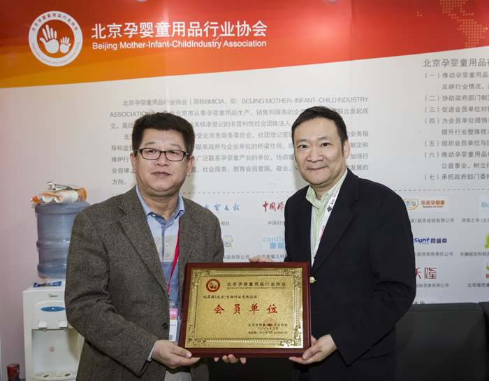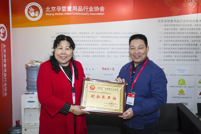 会长邓正学先生为新晋副会长单位北京金色时光母婴用品有限公司授牌