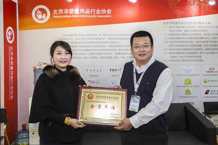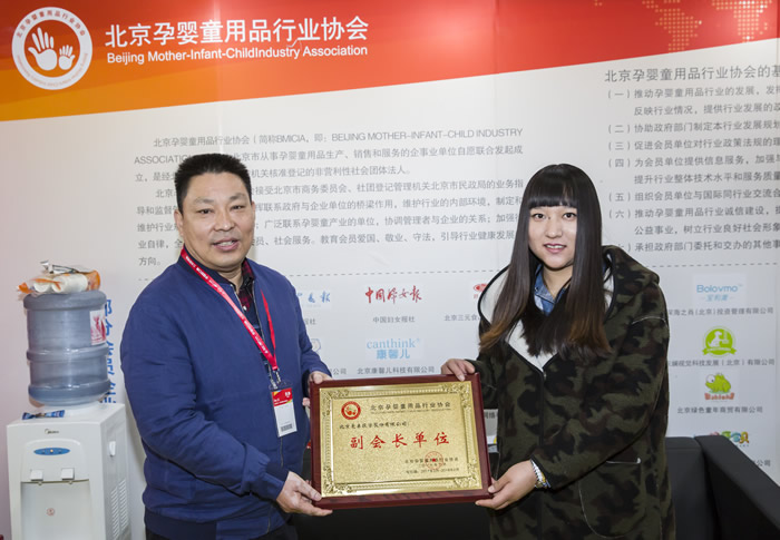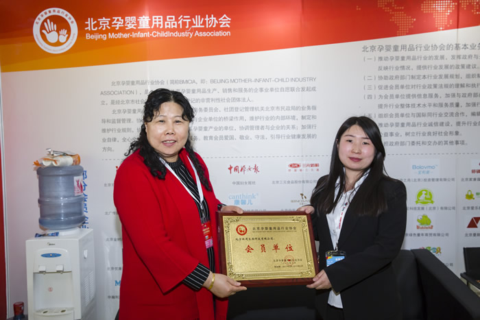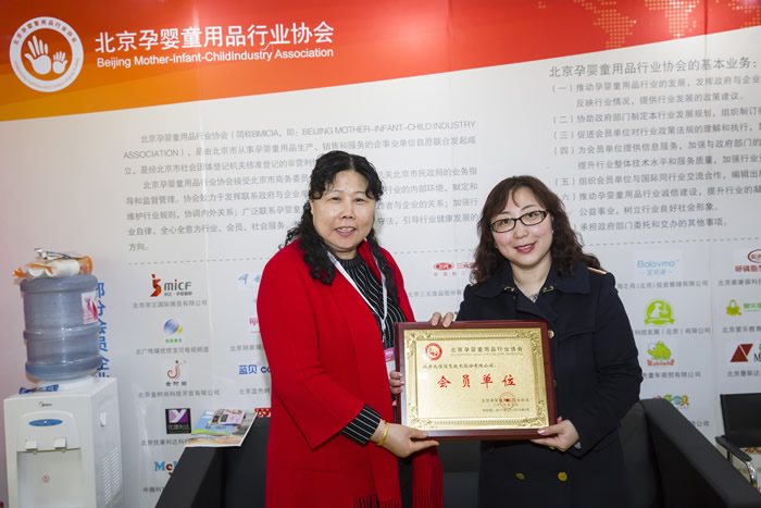副会长单位——北京金色时光母婴用品有限公司董事长杜亚静女士为会员单位授牌