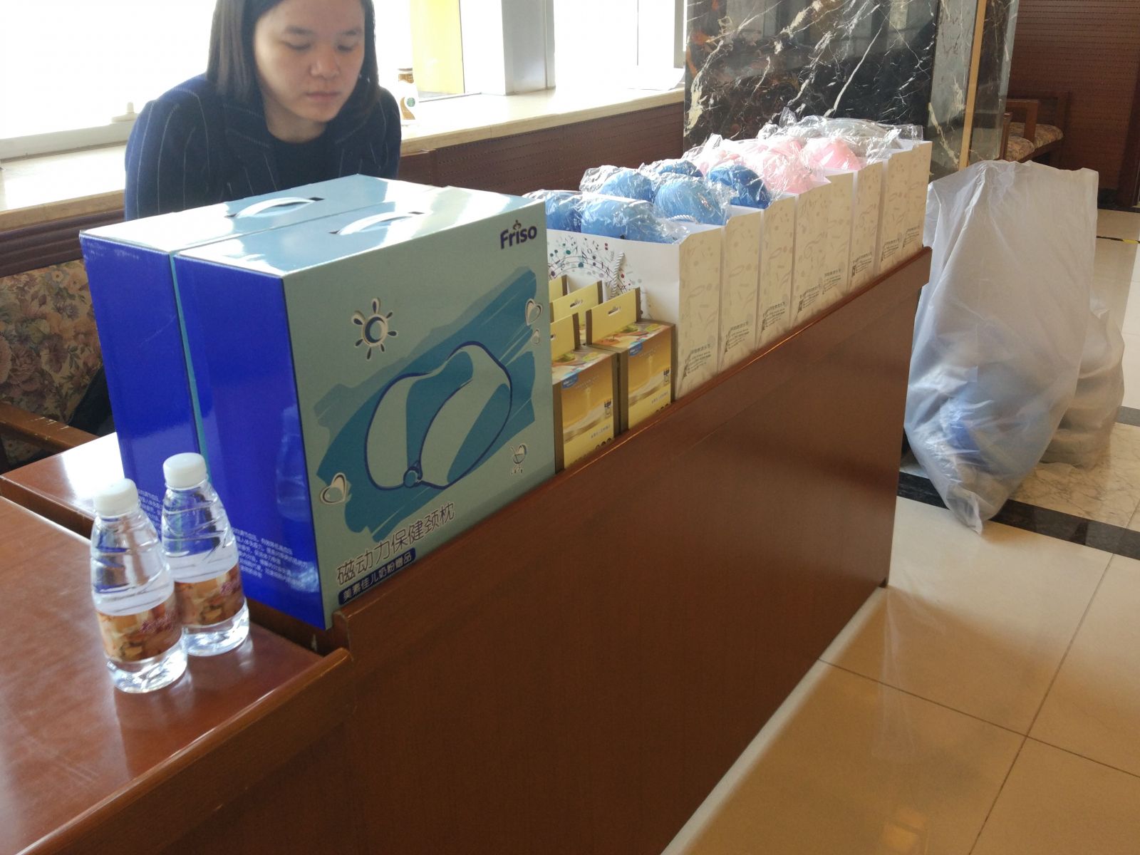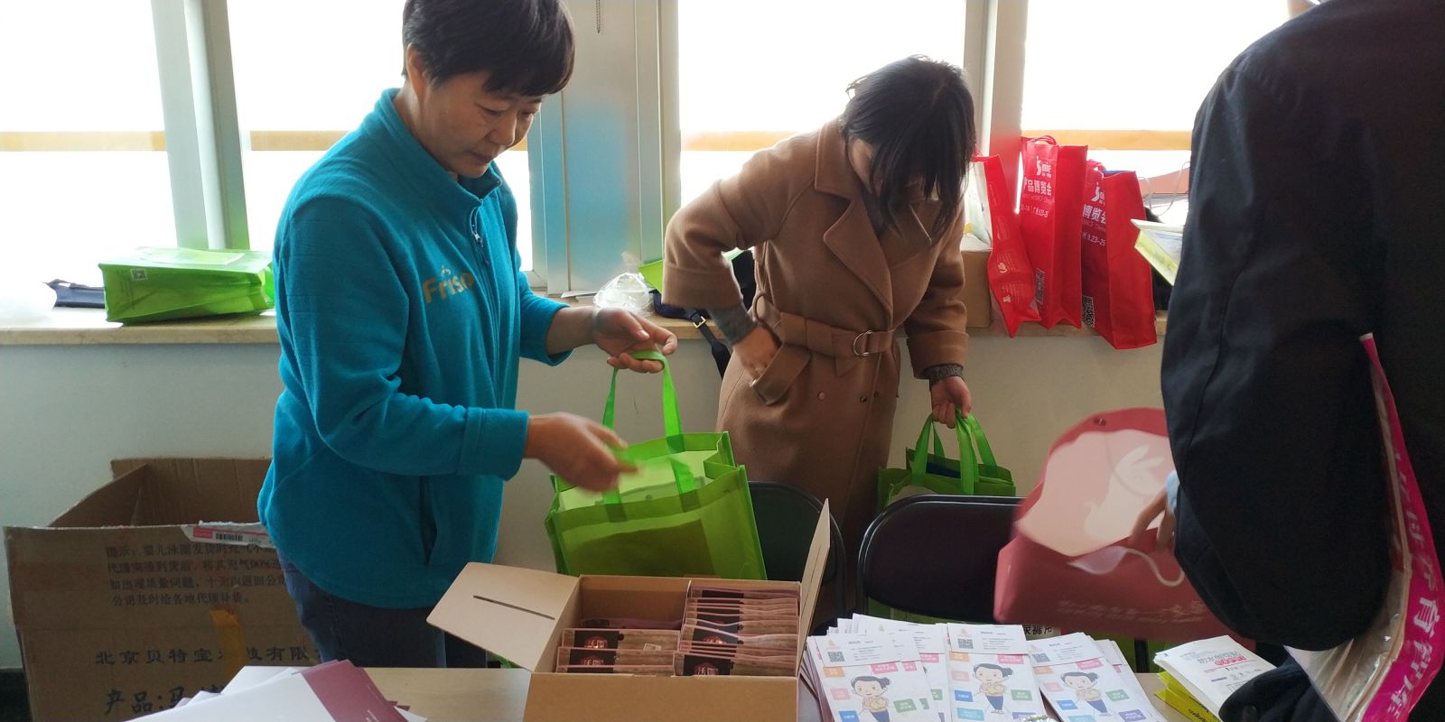 现场工作人员,正在为孕妈们准备丰富的签到礼品