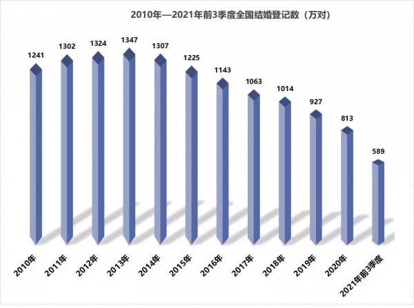 2、第七次全国人口普查数据显示,婚嫁、生育、养育、教育以及住房等成本较高,群众生育意愿下降,2020年育龄妇女综合生育率为1.3,已经处于较低水平,生育意愿为1.8个。民政部官网数据显示,2013年后,全国结婚登记数逐年下降。