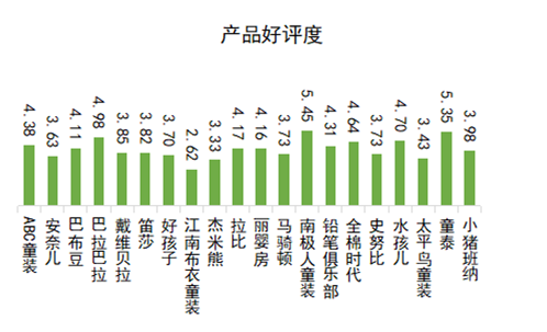 6产品好评度方面,南极人童装、童泰、巴拉巴拉位居前三。水孩儿、全棉时代、ABC童装、铅笔俱乐部、拉比、丽婴房、巴布豆分列第四至第十位。