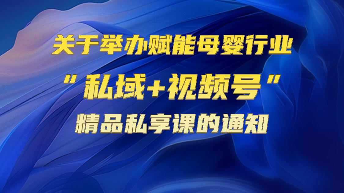 关于举办赋能母婴行业“私域+视频号”精品私享课的通知各会员单位、行业同仁: 在这个数字化时代,母婴行业正面临着前所未有的变革与挑战。为了助力各位商家抓住私域流量红利,提升品牌影响力与用户粘性,我们......