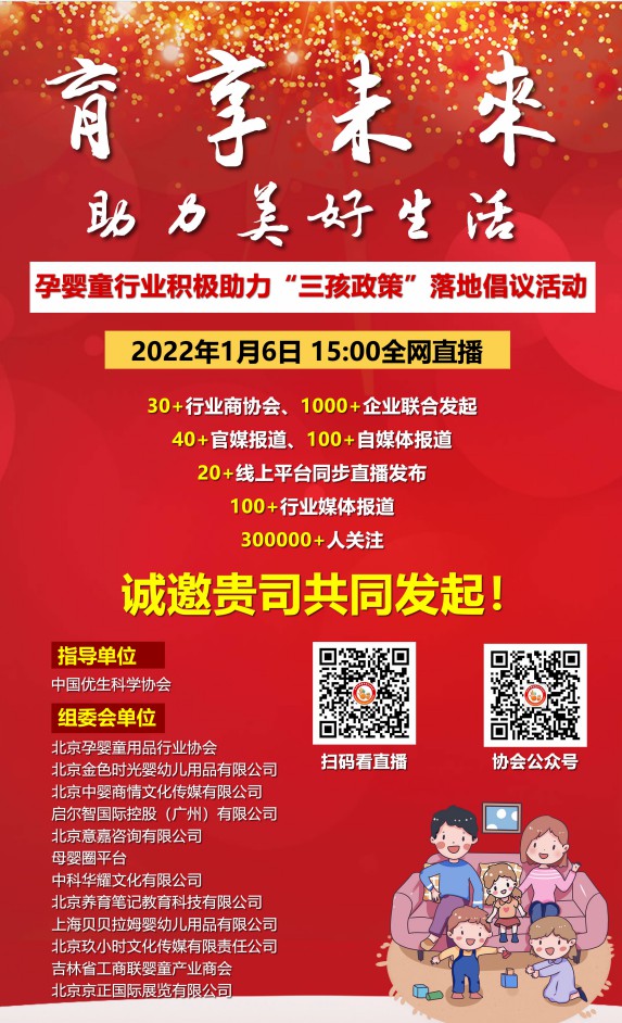 育享未来 助力美好生活孕婴童行业积极助力“三孩政策”落地倡议活动各相关单位: 自2021年5月31日中共中央政治局会议决策执行三孩政策以来,全国各地都掀起了一股鼓励生育,促进生育的热潮。从沿海到......